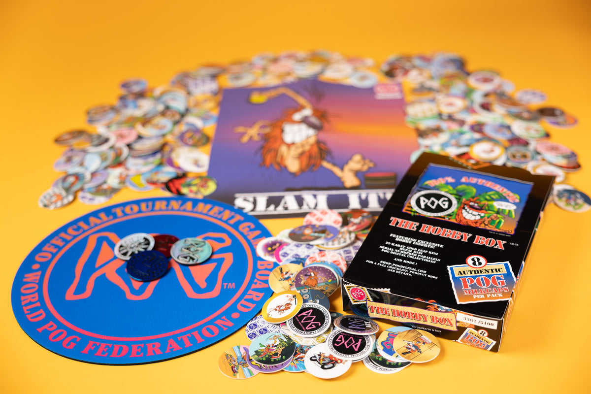 Back in the 1930s, on the island of Hawaii, kids invented the pog game! In those days, as everywhere else in America, pog drink caps were delivered in milk bottles at people’s doors. Hawaii’s kids had the idea of upcycling their milk caps by collecting them and inventing a caps game. They would remove the cardboard discs printed in the dairy's colors from the milk caps. First to collect milk caps, then to play milk caps game. The game play was exactly the same. Throwing the metal milk caps as a milk caps pog slammers onto the staked cardboard discs to win them.